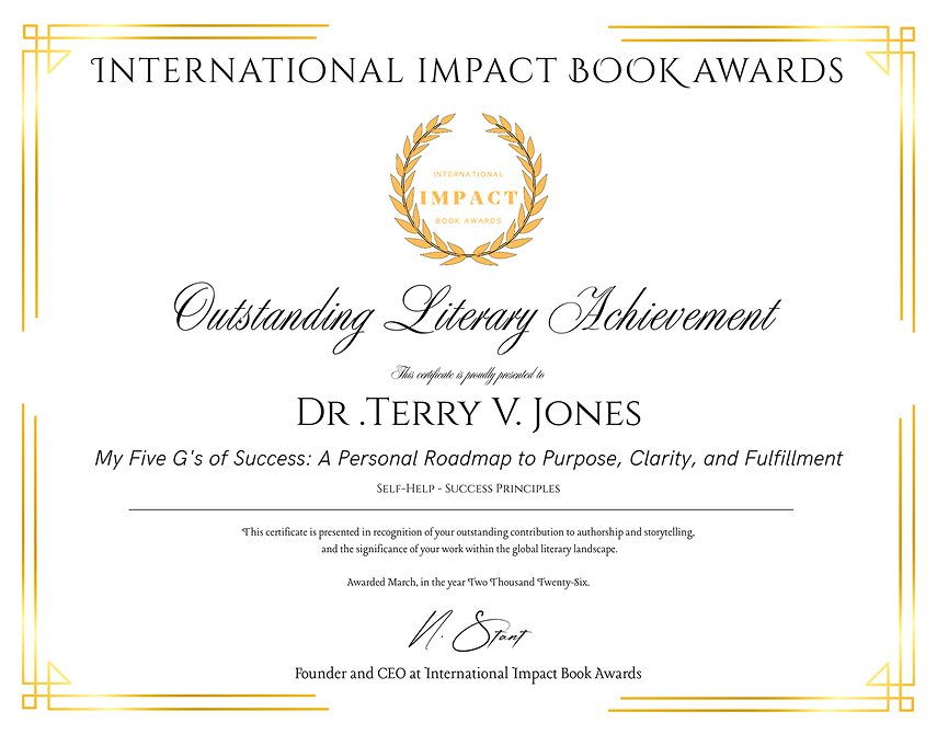 We are proud to announce that Dr. Terry V. Jones has been honored with the prestigious Outstanding Literary Achievement Award by the International Impact Book Awards. This recognition celebrates his exceptional contribution to authorship and storytelling on a global scale.